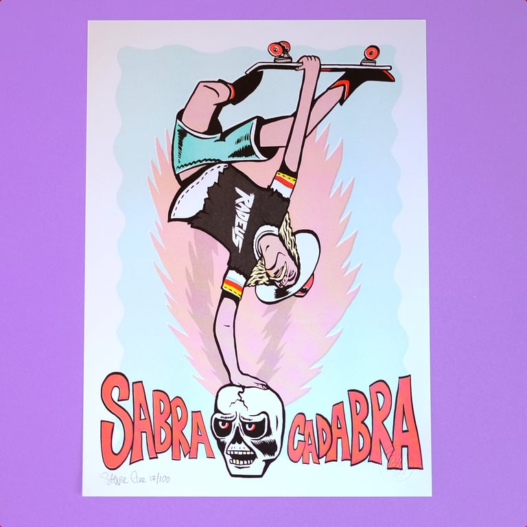 “SABRACADABRA” print is a 4 colour Risograph print printed in England on 170gsm brilliant white stock. It is A3 (297 x 420mm) and limited to just 100 copies.