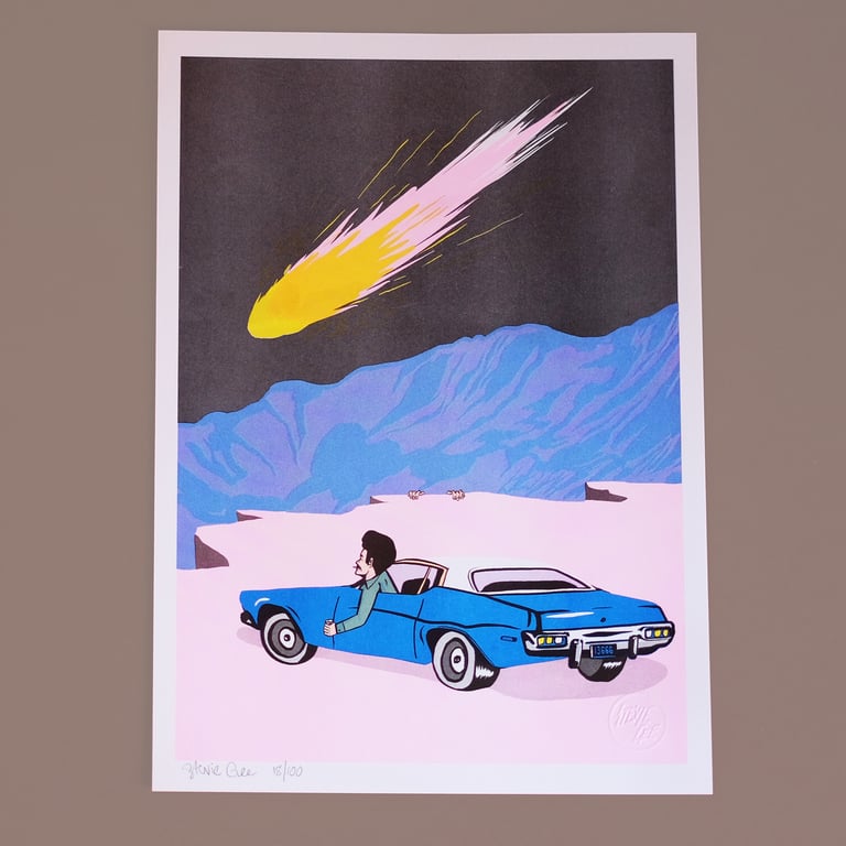 “The Engagement” print is a 4 colour Risograph print printed in England on 170gsm brilliant white stock. It is A3 (297 x 420mm) and an edition of inly 100.